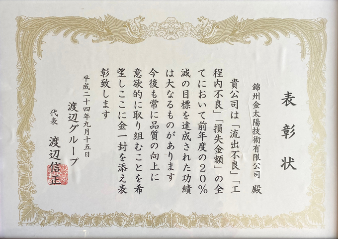 錦州金太陽(yáng)技術(shù)有限公司は、株式會(huì)社渡辺製作所によって2001年8月に中國(guó)に設(shè)立された板金の設(shè)計(jì)?加工、技術(shù)サービスを従事する子會(huì)社です。
